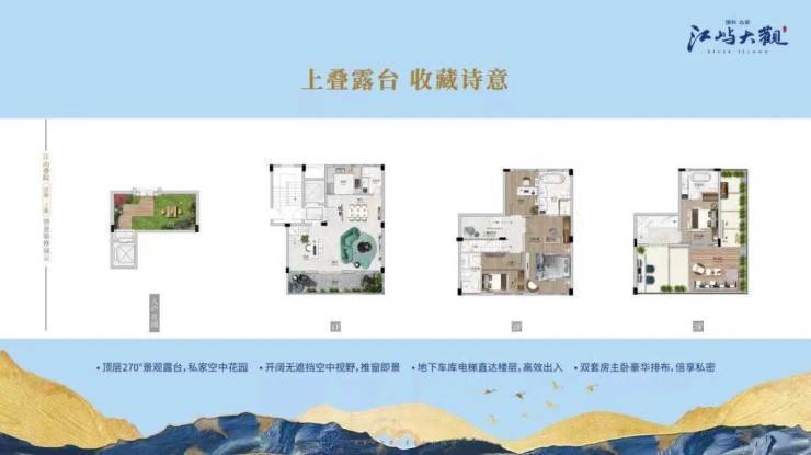 建筑面积约13万方江岸巨著,集商务、办公、居住于一体,主力产品为江山叠院、江景公馆,自规划美学园林、科创广场、文化中心、老年中心等奢级配套,属于城央之上的纯粹高端住区。