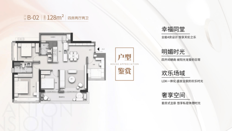 B-02 建筑面积约128㎡ 四房两厅两卫
