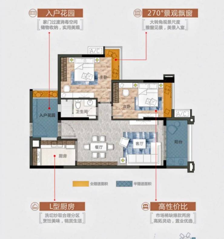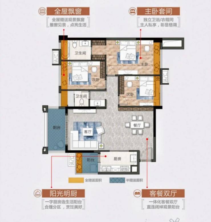 赠送观景飘窗,窗外阳光、美景引帘入室
