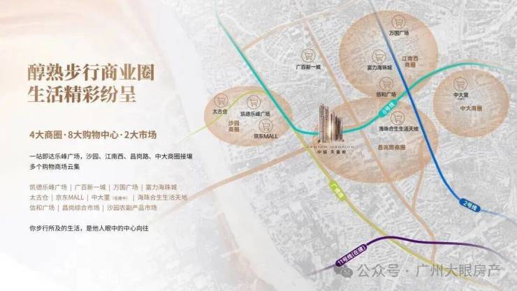 海珠西成熟配套,与昌岗,江南西、沙园、中大商圈相互接壤,兼具繁华与烟火气,老广最喜欢的聚集地。