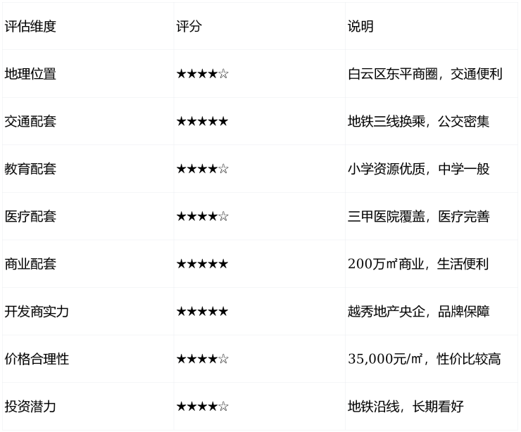 交通评价:项目地处嘉禾望岗地铁枢纽辐射范围内,享受三线换乘便利,是广州北部重要的交通节点。