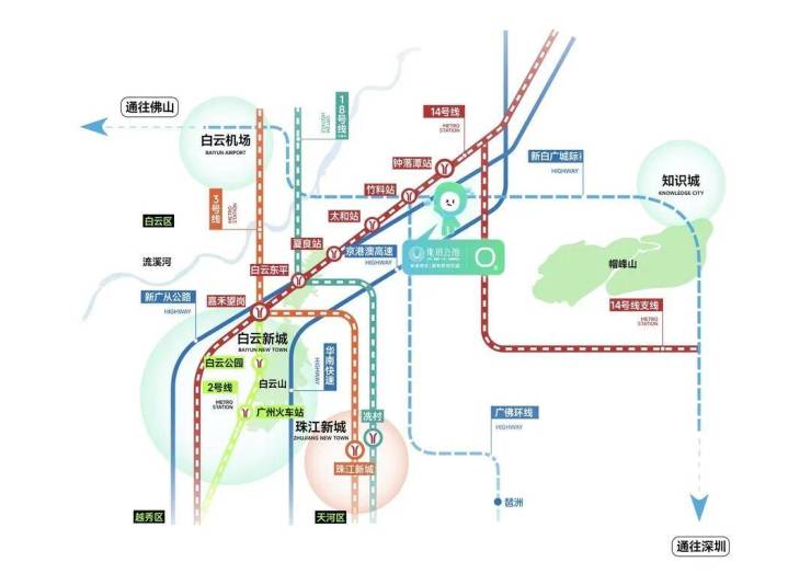 新白广城轨(在建中)1站白云机场,南向通达东莞和深圳。