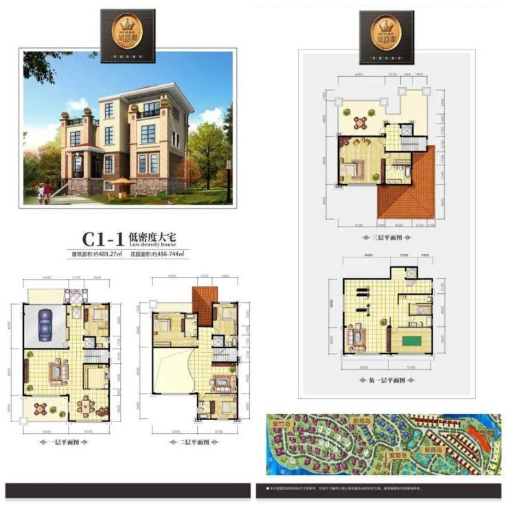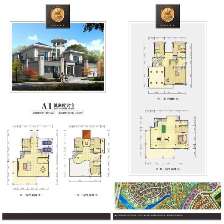 A1下叠 建筑面积约192㎡、花园约297-338㎡、地下室约119㎡