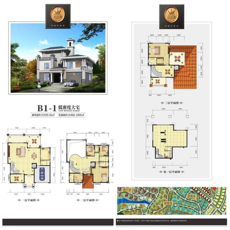 B1下叠 建筑面积约169㎡、花园约191-290㎡、地下室约106㎡
