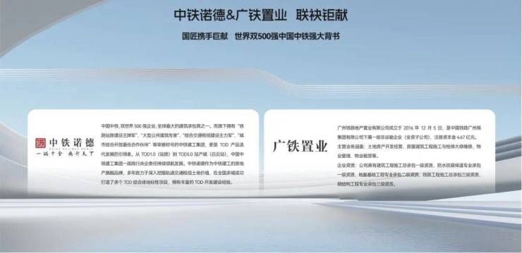 项目由中国中铁与广铁集团两大央企联袂打造。中国中铁位列世界500强,广铁集团作为国铁集团旗下核心路局,强强联合,以雄厚实力与资源保障项目高品质呈现,共筑“羊城之门”地标之作。