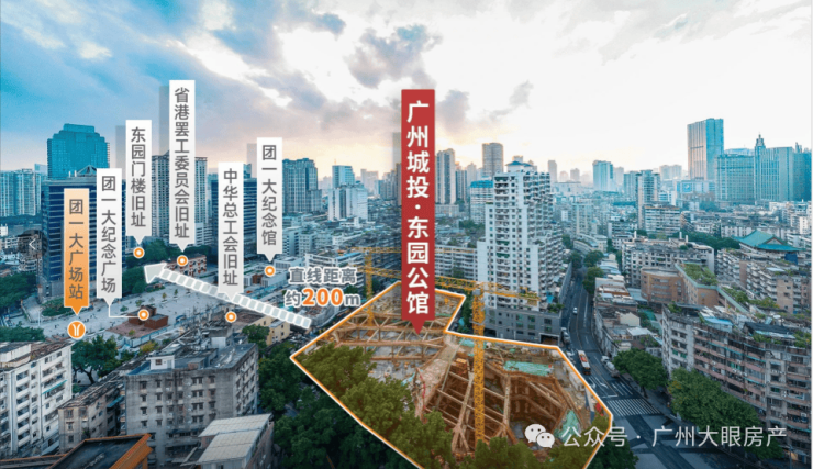 项目旁有广州东园文化广场整合东园门楼、省港大罢工旧址、中华全国总工会旧址等文物,打造成为广州近现代史迹的集中展示基地。