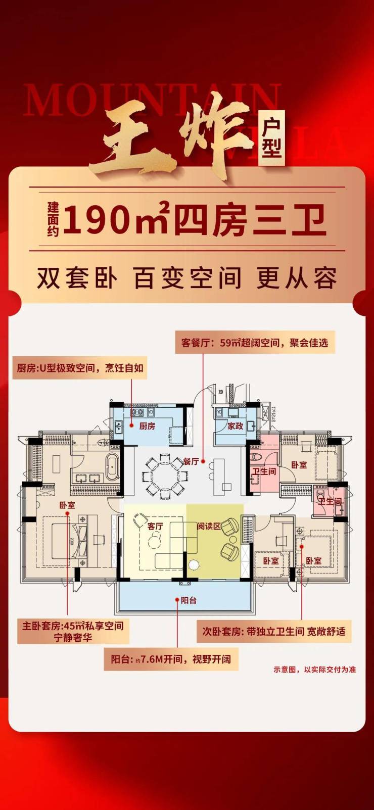 113㎡4房2卫(仅24套):片区绝版南北通、L型大阳台,超100%实用率,改善首选