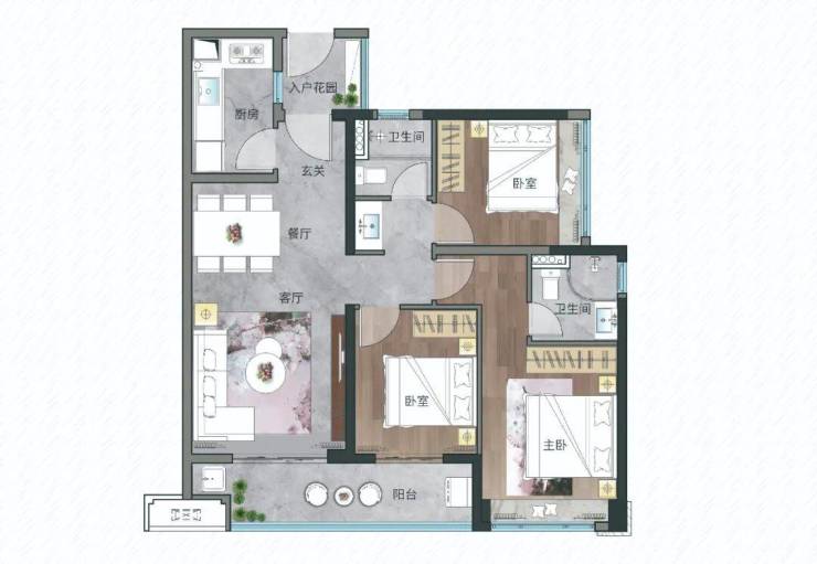建面约99平三房,户型方正,动静分区,轻松满足三代同堂的需求。