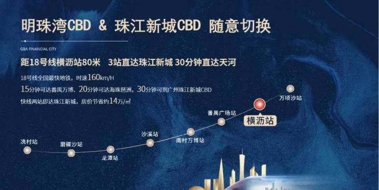 项目距离地铁18号线横沥站仅约80米,同时,18号线还串联广州各CBD,无需换乘,轻松实现1站万博CBD、2站琶洲、3站珠城CBD;