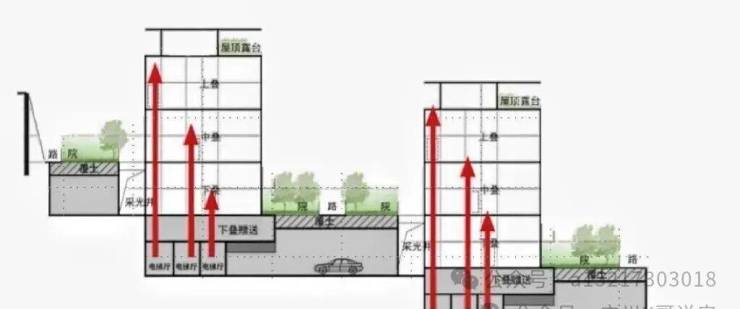 叠墅产品:屋顶用金属框架,身段利用真石漆、铝合金脚线、深色涂料、金属格栅打造,和谐之间彰显品质。