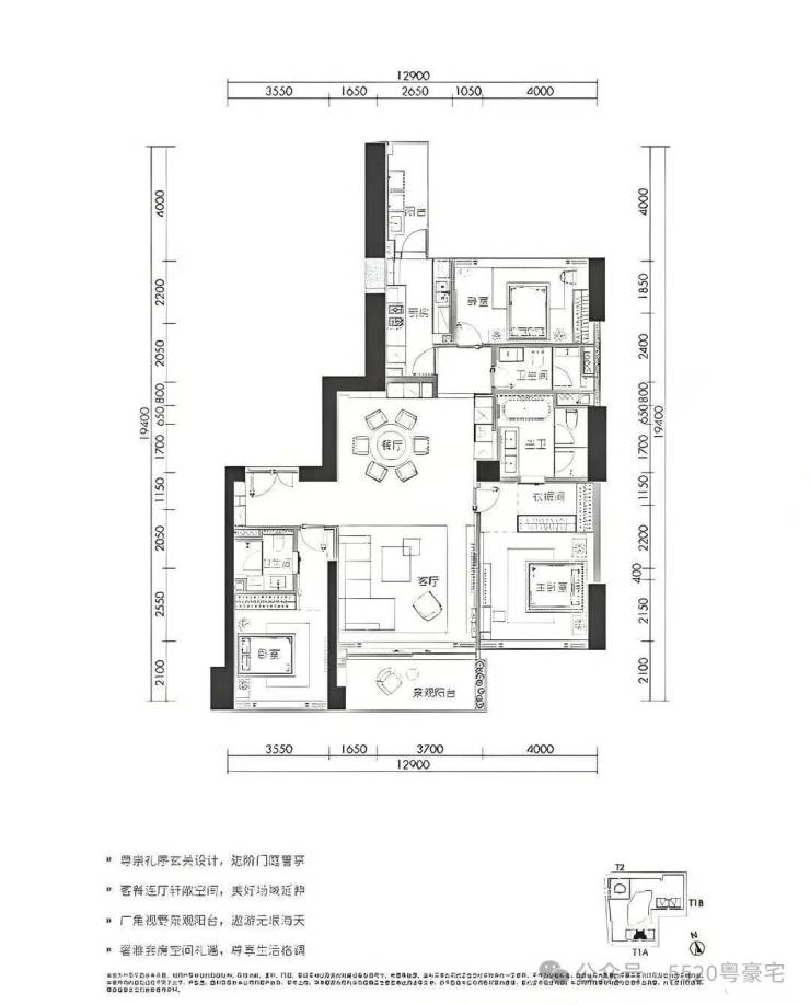 350㎡四房两厅四卫:在1栋一、二单元6-32层有分布,为01、04户型。可享受南、西、北或南、东、北三面景观视野,能观看深圳湾海景、内海景和城市景观。户型有超9米超宽幕开间,三套房设计。
