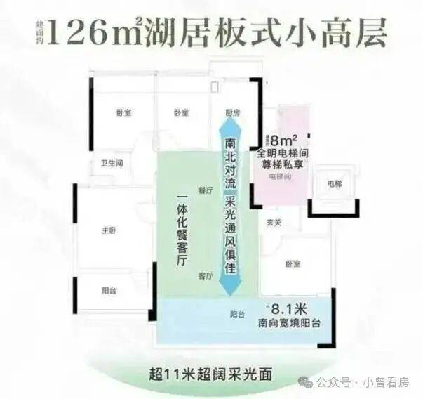 目前越秀观樾主推 126-252㎡的三至五房,还有 210㎡的合墅产品在售,所有户型均为纯板式设计,大部分做到了南北通透,得房率超 85%,部分户型因为赠送飘窗和阳台面积,实用率能达到 110%。