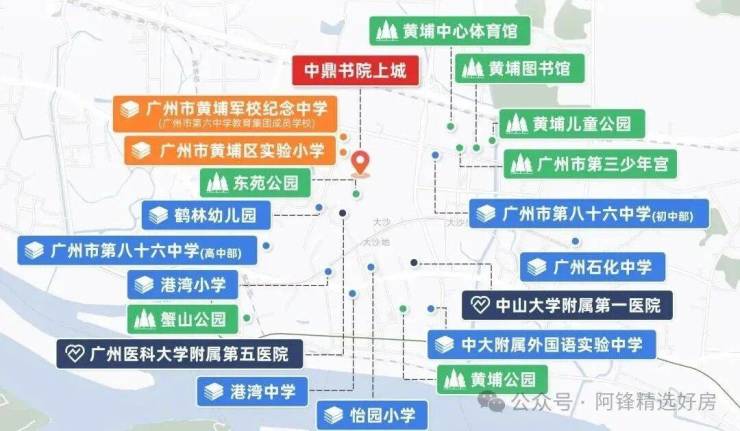 除了自配幼儿园,项目还对口广州市黄埔区实验小学、广州市黄埔军校纪念中学(广州市第六中学教育集团成员校),打通12年优质教育。