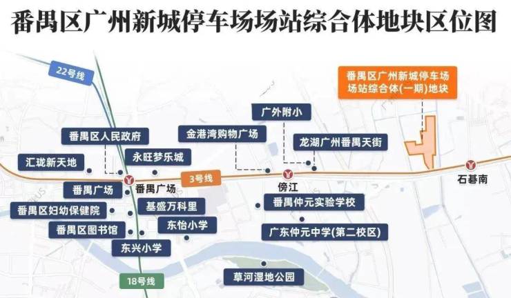 1站之外的傍江站,龙湖天街已经在建;2站到番禺广场,有永旺梦乐城、百德商业中心等商业。