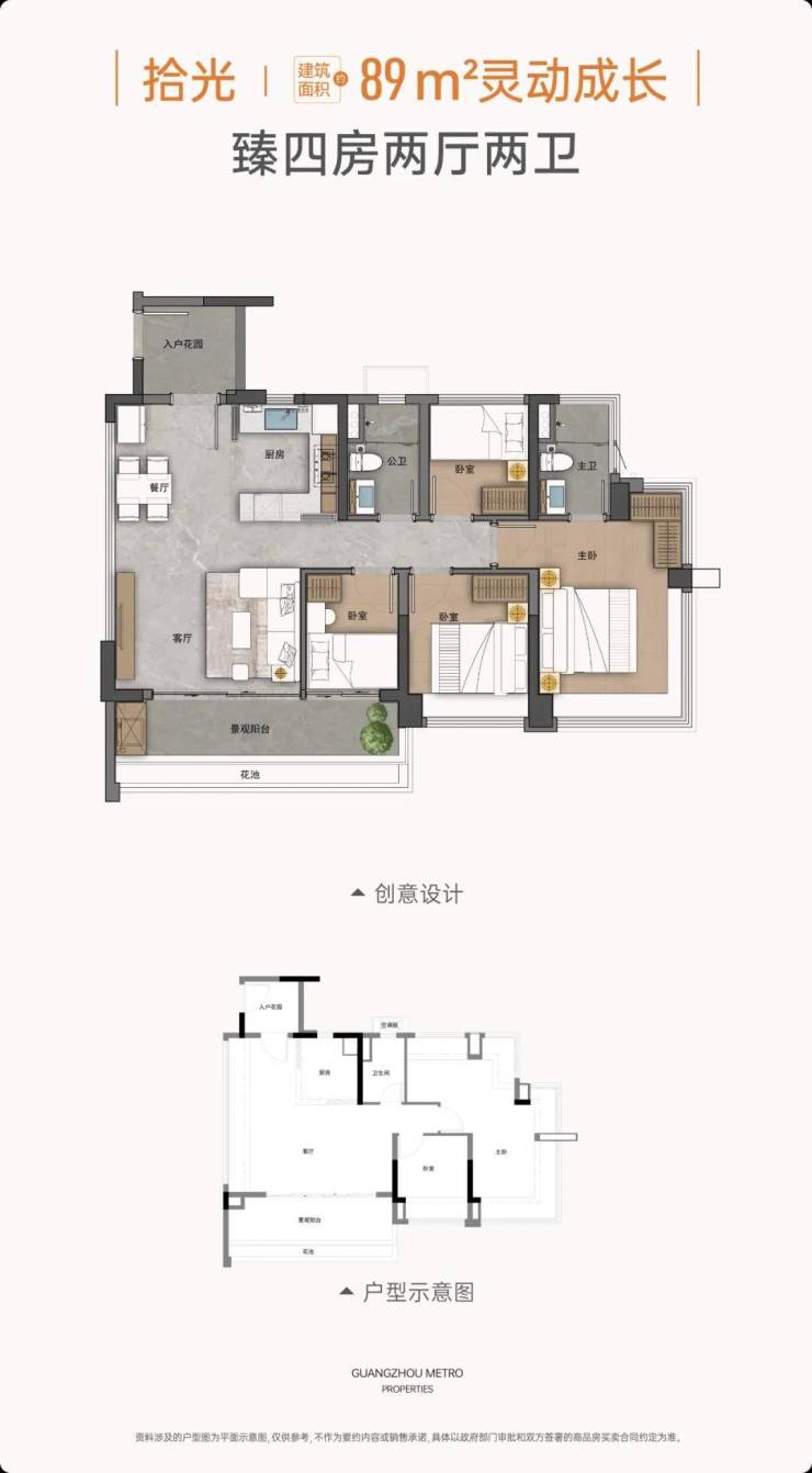 户型面积:建面约73-130㎡全南向4/5空间两厅两卫