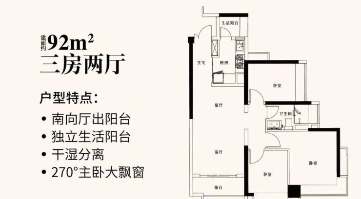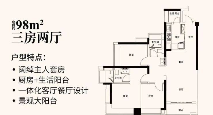 采光充足,通风效果极佳,全观景独立生活大阳台,体验鸟语花香的生活品质客厅、厨房、餐厅、阳台,灵动设计,尽享超100%使用率,270°景观大飘窗,拥揽开阔视野景色,全功能主卧套间,舒适尊贵,阔绰空间,独享私人领域。