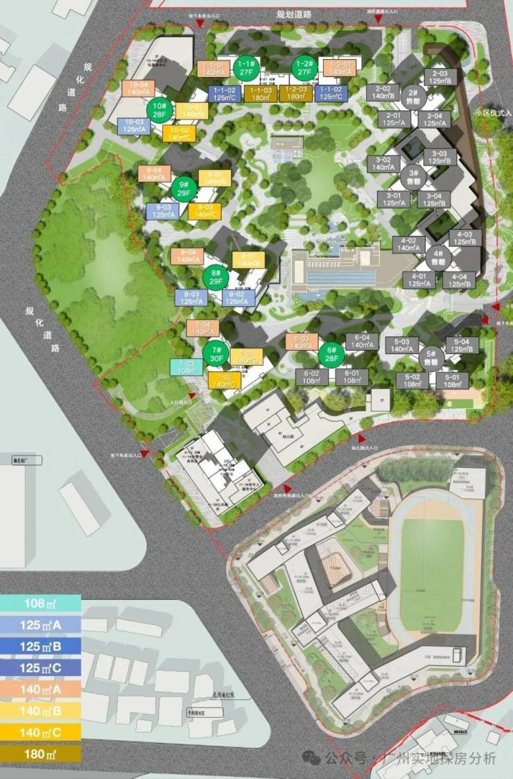 2、教育资源优质:小区配建12班幼儿园及45班九年一贯制学校,由广州中学教育集团管理,华阳小学协助运营,2026年9月开学,实现“目送式教育”,满足家庭对优质教育资源的需求。