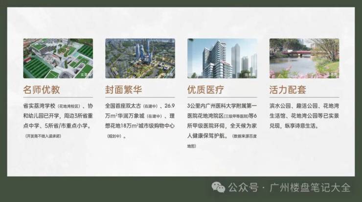 省实荔湾学校(花地湾校区)、协和幼儿园已开学,周边3所省重点中学、5所省/市重点小学。(开发商不做入读承诺)