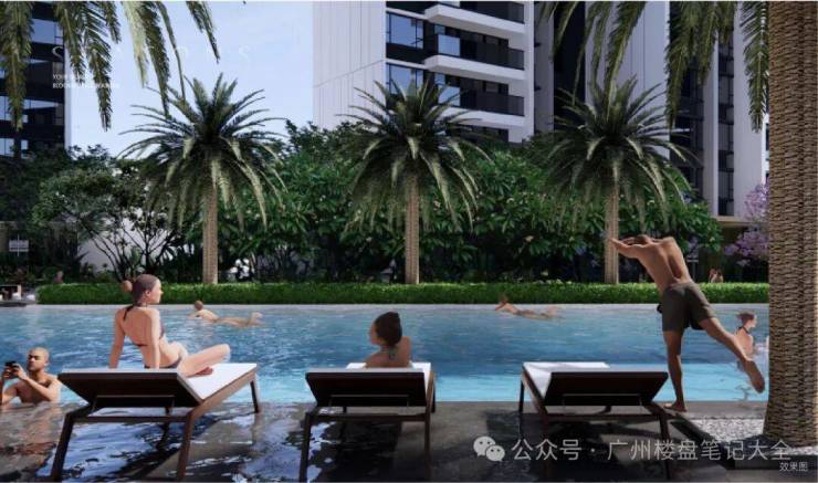 ✅度假泳池:融合公园化自然体验,打造阳光泳池,水景黑金沙铺装相映成趣,叠水景观潺潺,景观躺椅营造度假式体验。