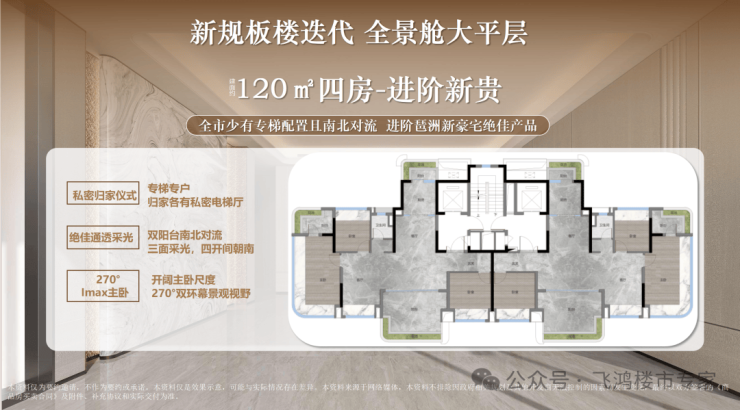 作为琶洲CBD的入门级产品,约120㎡户型却做到了专梯入户和大四房,兼顾了私密性和空间感。