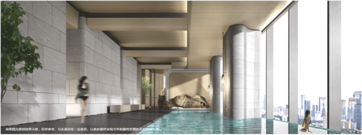 云端会客厅——深圳首创约150米建筑面积约6000㎡带露台云端会客厅,配置有宴会厅、恒温泳池、健身房等功能,在家即享五星级酒店配置。
