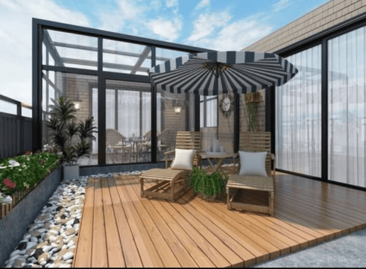 建筑面积:138平方米,送露台面积:140平方米,使用率高达200%,买一层送一层 阳光屋,玻璃房,随心设计