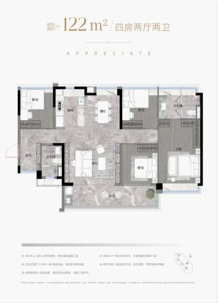 ✅真跃级:约3.75m开间主套,步入式衣帽间+270°景观飘窗+三分离卫浴;