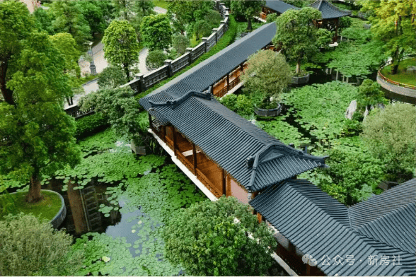 约 4.6 万m²晋徽水系园林,非景观,乃艺术,当业主在逛园林时,也不用担心被楼上的邻居看到,星河湾用古建长廊的制式,巧妙在园区动线上进行了视线遮挡。