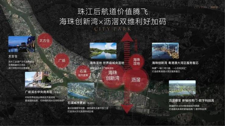 纵观珠江两岸的豪宅,每一个项目都拿“江景”做文章,从初代富人区滨江东,到二沙岛,再到珠江新城,再到新贵琶洲、创新湾,无一不是有江景加持的。