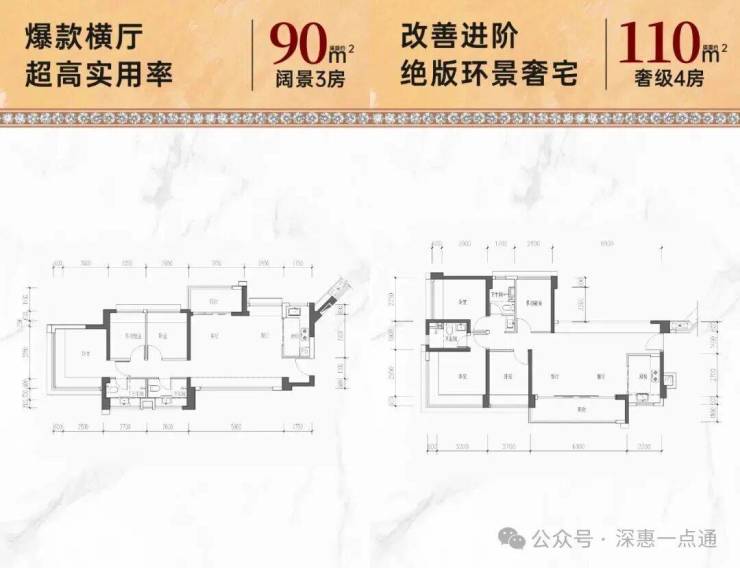 110㎡的4房2厅2卫,折后总价607-620万/套,单价5.51-5.63万/㎡。