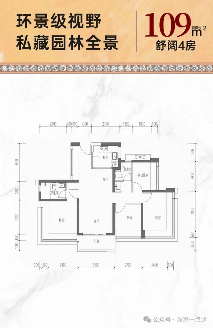 109㎡的4房2厅2卫,折后总价556-575万/套,单价5.09-5.27万/㎡。