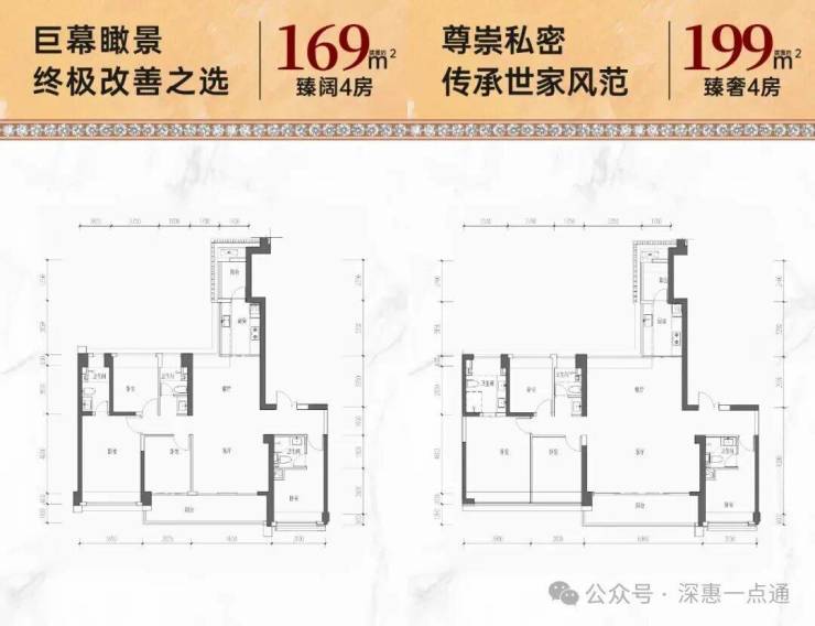 199㎡的4房2厅3卫,折后总价1138-1183万/套,单价5.71-5.94万/㎡。