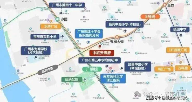 项目位于海珠区最强教育板块之一,根据海珠区教育局公布《2024年海珠区公办小学招生服务地段表》:中旅天宸府所属沙园街橡胶新村社区,约500米直距昌岗中路小学,符合就近入读条件。