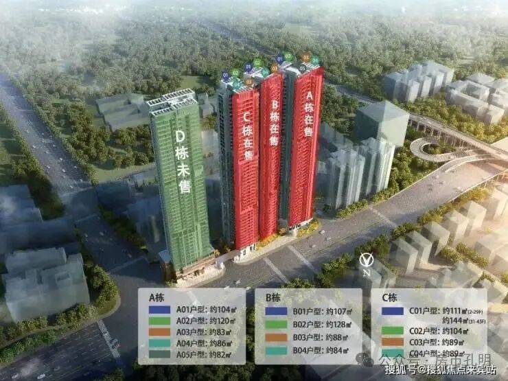 中旅天宸府占地约1.4万㎡,体量不大,共规划有4栋44-46层的超高层住宅,现在主要在售的是C栋 89-144平,三房-四房,2025年底收楼