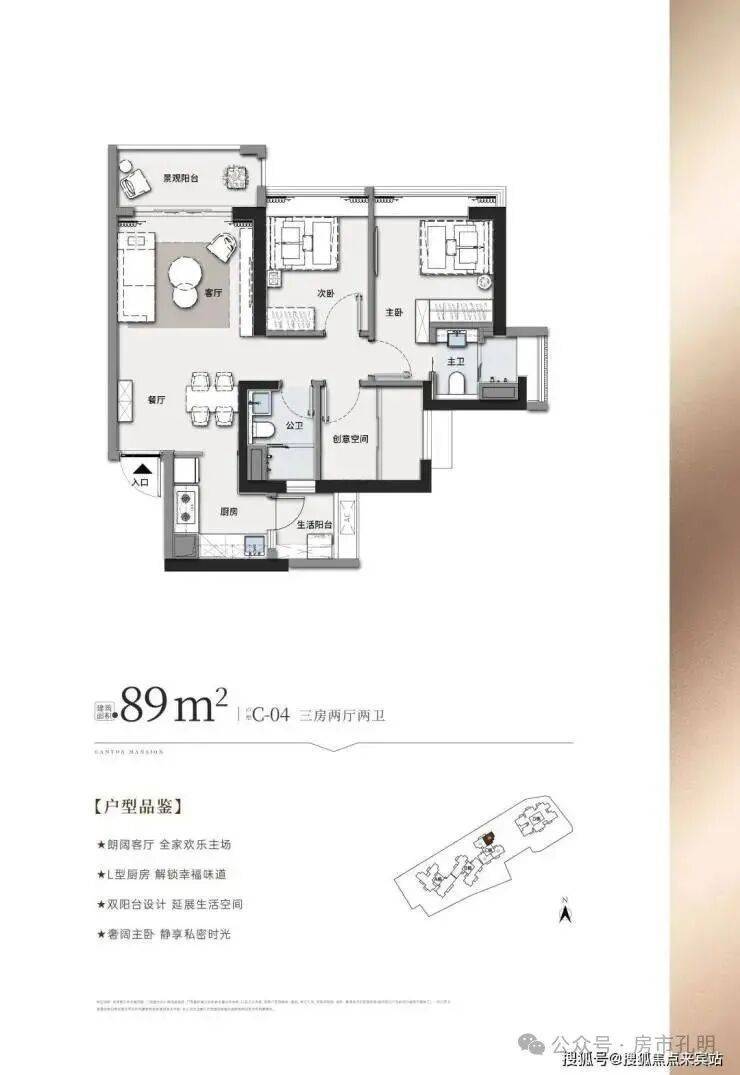 建面约89㎡三房两厅两卫精装3房设计,方正实用,动静分区,双阳台设计,L形厨房布局,兼具实用与舒适,约3.6米阔景阳台,视野开阔,揽江城美景