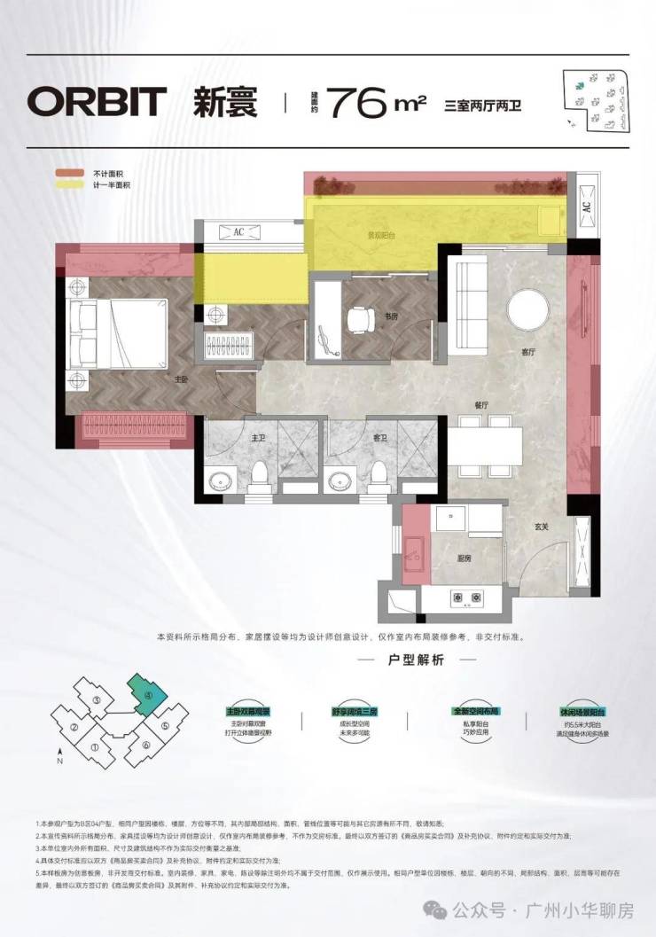 【亮点10】74㎡三房两卫,约5.5米阳台❗