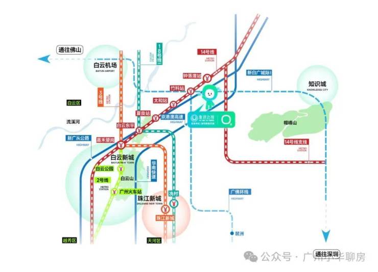 【亮点7】5站嘉禾望岗·7站天河❗(地铁14号线直达嘉禾望岗地铁站。14号线4站到白云东平,换乘18号线(建设中)3站直达珠江新城(冼村站),信息来源百度地图测距