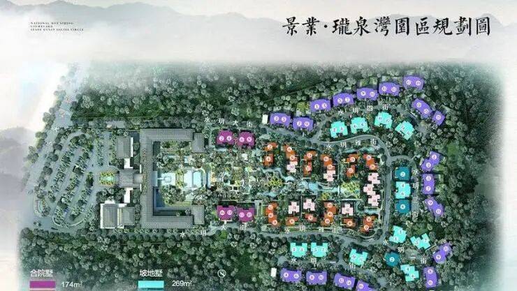 项目的102-174㎡ 宋韵美学合院、269-294㎡ 坡地私泉别墅,依泉谷山势,错落布局;