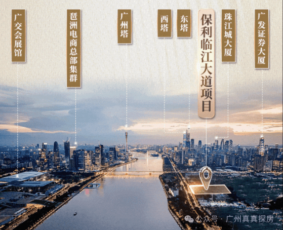 与珠江新城直线距离不到500米,距离广州顶豪侨鑫汇悦台也不过1公里的距离;南向一线望江,离珠江直线大概只有150米,基本没有遮挡,并且隔江对望的是琶洲会展中心和琶洲cbd。