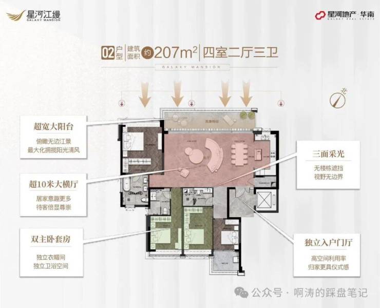 6、7栋是207㎡,5栋是235㎡专梯专户,距离江边仅90米左右,是项目主推户型,货量最少,只有30套。