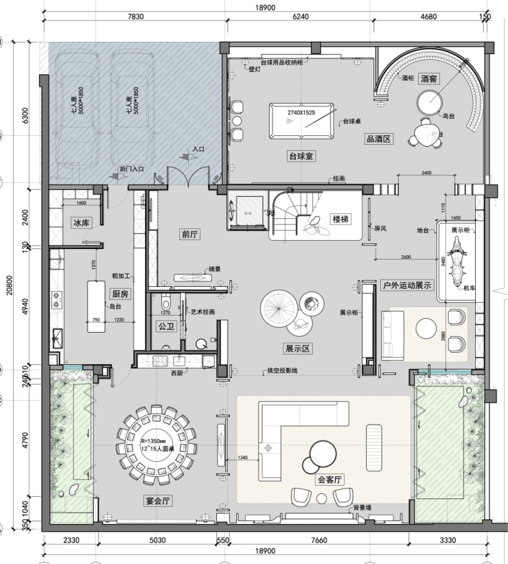负一层下沉庭院周边设工人房、家政间,储物无忧;