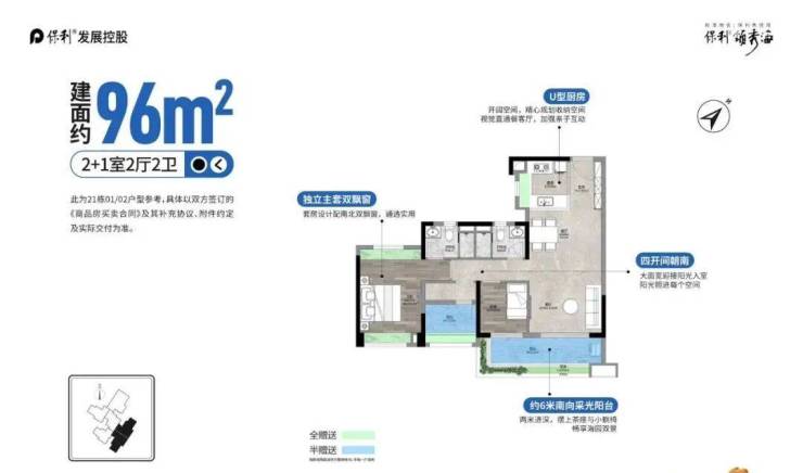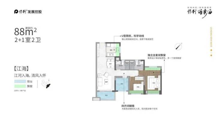 户型PLUS:南北对流➕四开间朝南,阳台拉通次卧,约5.5米大面采光