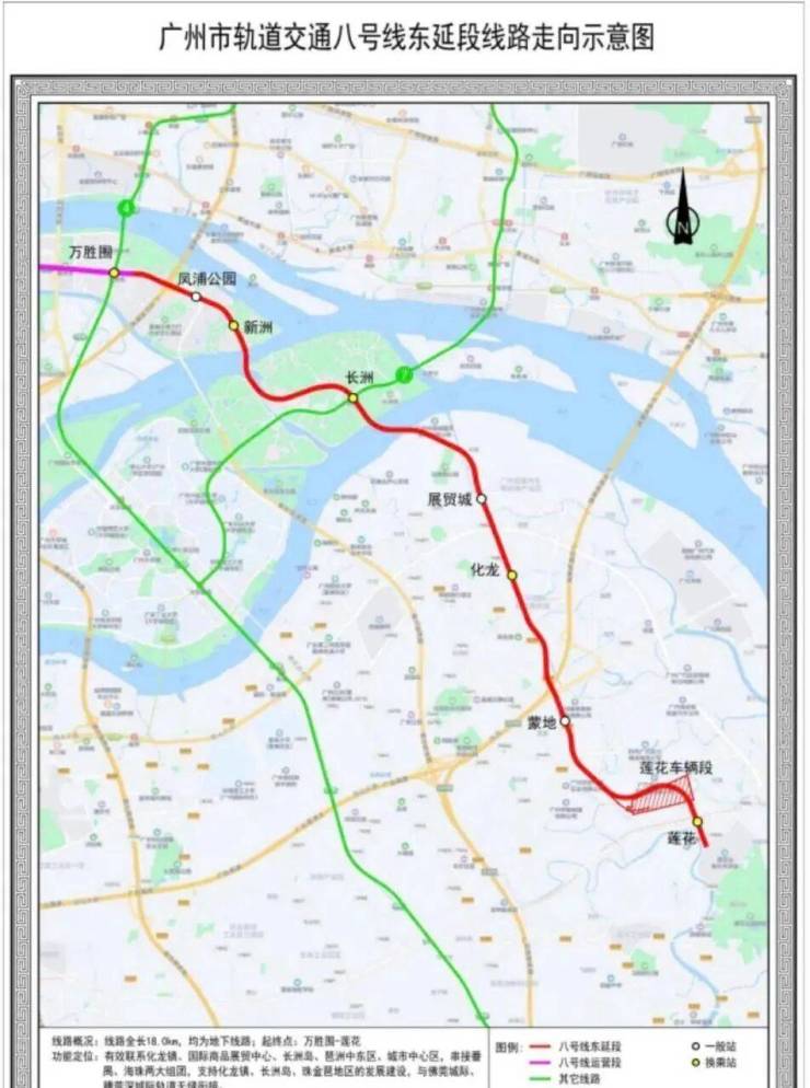 8号线东延段(莲花-万胜围)计划于2022年12月开工,线路全长约18.0km,为全地下敷设,2027年12月开通运营。
