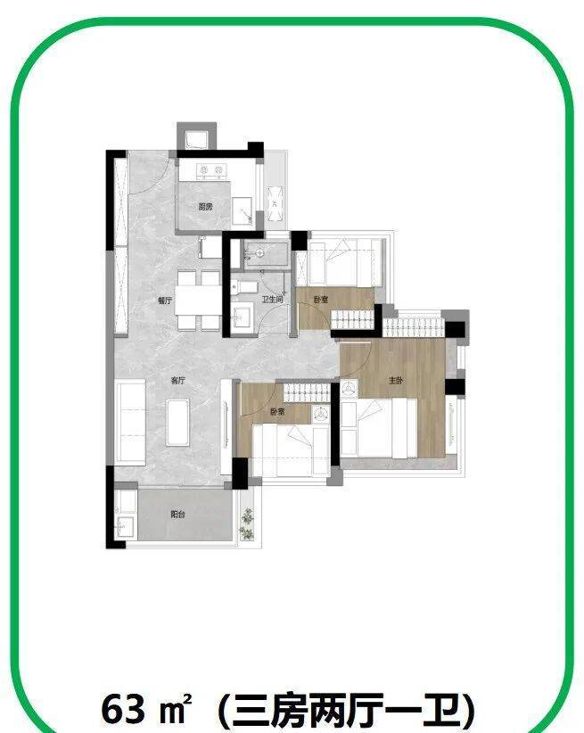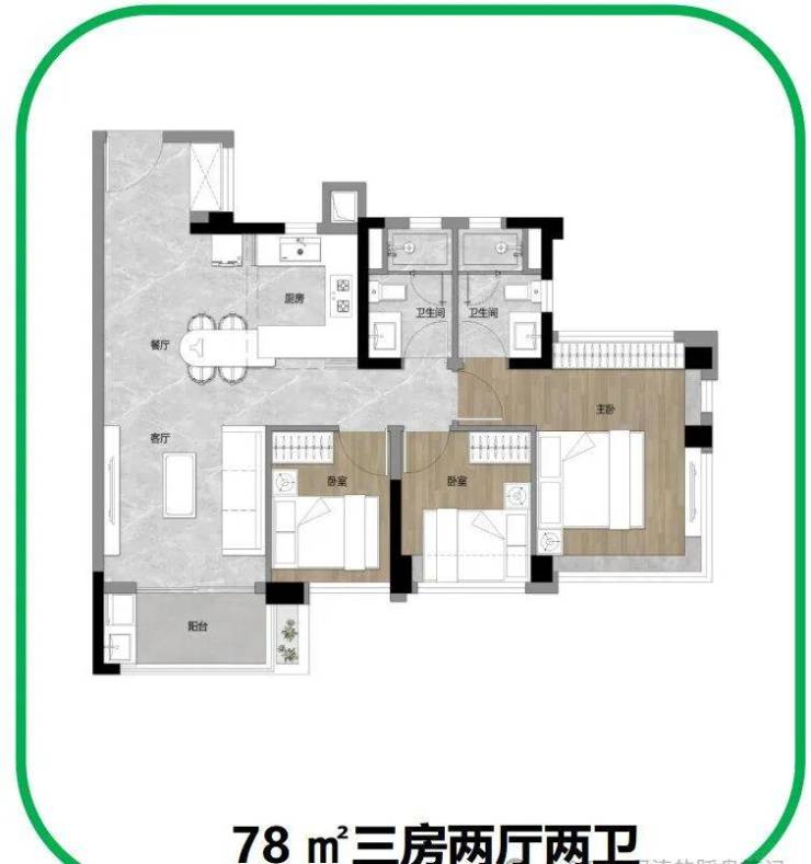 💥全能满足——约82㎡南北通透横厅三房两卫