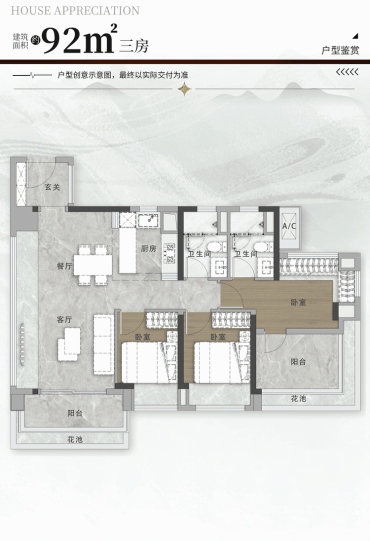 建面约92㎡三房