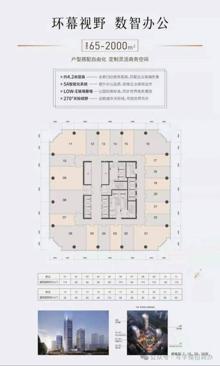 主力产品:A塔65-2000㎡超甲级写字楼