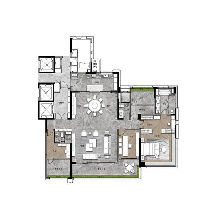 我们再来看看此次加推的268平的大面积户型,作为项目的旗舰,暗藏着哪些巧妙的设计?