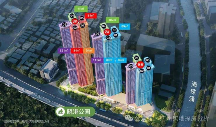 景观资源:西南向直望17万平方米的晓港公园,中高层可远眺珠江、广州塔及珠江新城天际线,部分户型还能俯瞰中大校园红墙绿瓦,