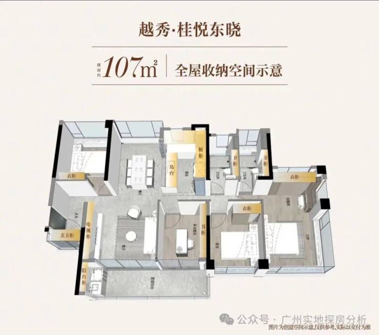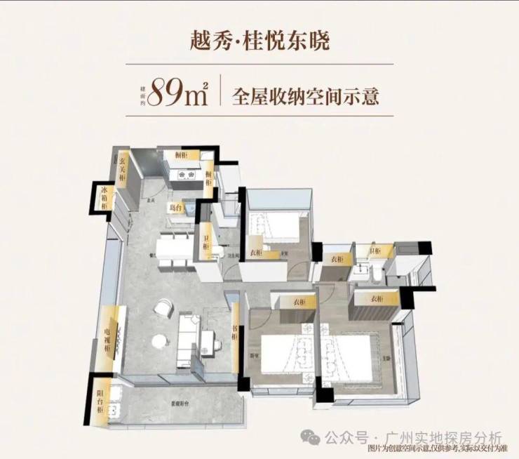 3、产品设计:户型使用率高,阳台赠送面积大,部分户型可达120%得房率,空间利用率领先同区域产品。交付标准较高,采用四层隔音玻璃、防潮防霉材料等,细节设计贴合广州生活需求,如厨房配备猛火炉灶、防干烧系统,柜体采用防霉板材等。