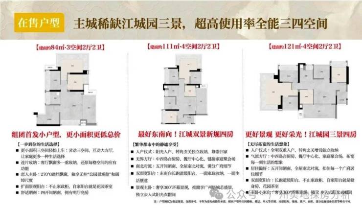 户型设计:主力户型为84-121㎡三至四房,全部为南向设计,采光通风良好。部分户型得房率可达120%,阳台赠送面积较大,空间利用率高,如89㎡户型可做到四开间朝南,111㎡户型实现五开间朝南+南北对流,满足不同家庭结构的居住需求。